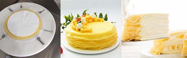 It applies to smearing cream and jam to round cake body ,professional for the mille crepe cake making