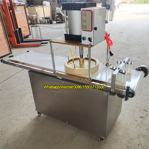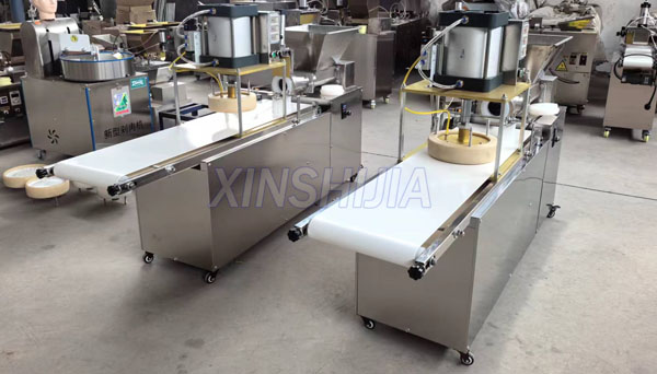 XINSHIJIA Pizza dough pressing machine is a multi-functional press machine, which can be used to press pizza base or big size bread cake or other Chinese cake. it can make different size of pizza by change molds.This machine equipped with conveyor belt, fully automatic machine,stainless steel body, safe and hygienic, it only takes 8 seconds to make a pizza, with high efficiency and stable performance.