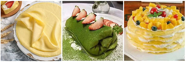 XINSHIJIA crepe making machine is used to make skins for mille crepe cake. According to different moulds, it can make 6-inch to 10 inch products, which is convenient and fast. It has high output and wide application range which can be used in cake shops, food processing industries, restaurants and other places.