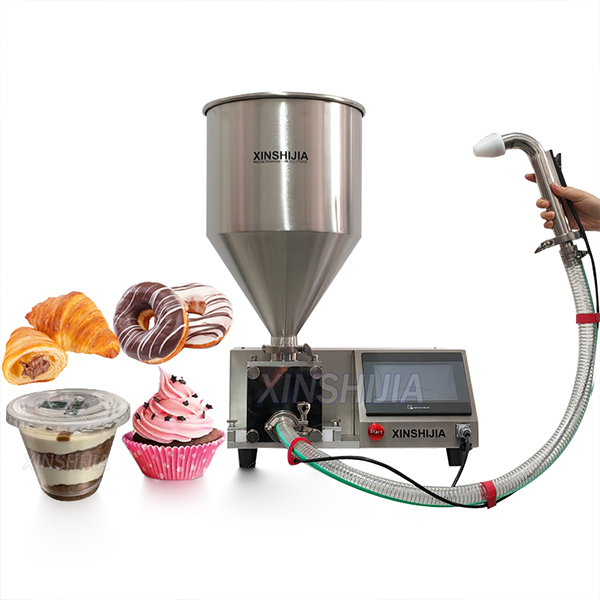 XINSHIJIA multifunctional cake and cream filling machine is an automated device designed to accurately inject fillings such as cream, jam, chocolate, and more into cakes or desserts. It enhances production efficiency, ensuring uniform and consistent filling amounts in each product. Suitable for various types of cakes, desserts, and baked goods, this machine is easy to operate and clean.It is an ideal choice for bakeries, small food factories and cake production lines. It is widely used in modern cake and dessert manufacturing, such as donuts, bread, cakes, puffs, and other desserts.