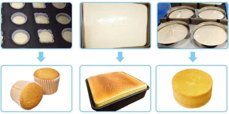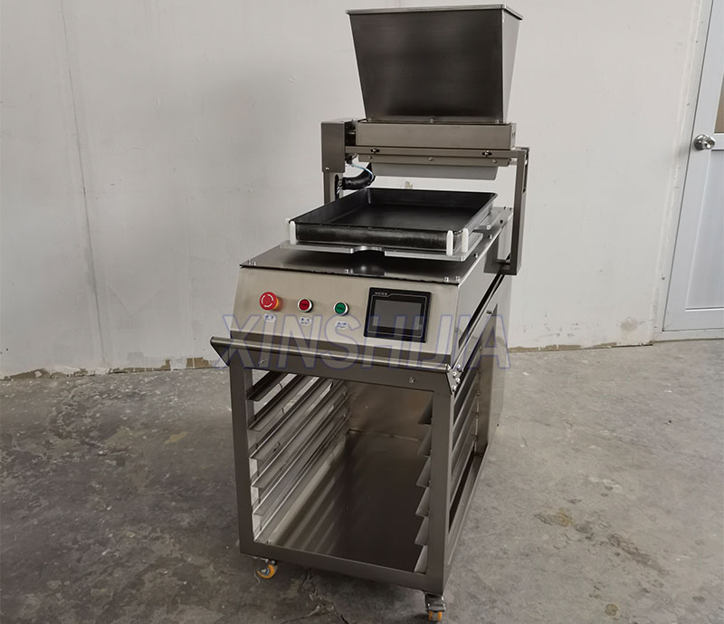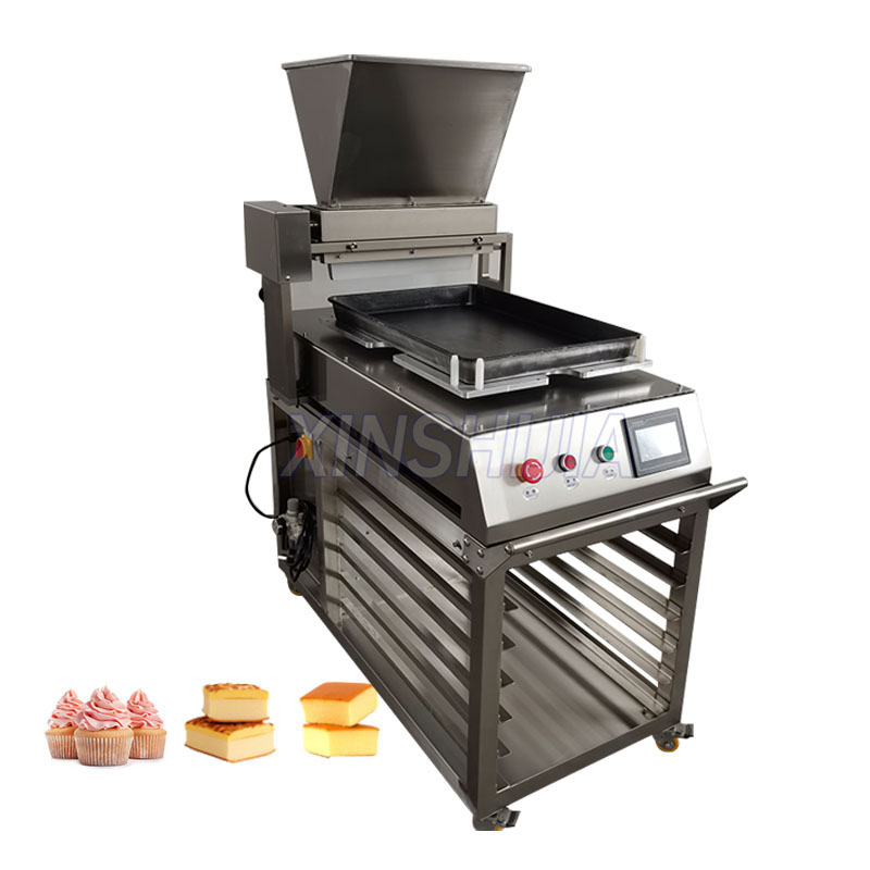 XINSHIJIA Commercial automatic cake depositor machine suitable for quantitative filling of liquid material like sponge cakes,chiffon cakes and mousse cakes.It suit for the pan size 400*600mm,samll size than common commercial model,it is the best choose for aboard